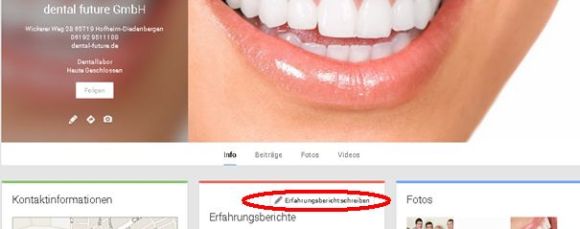 5. Schreiben Sie ein Feedback. Was hat Sie an dental future begeistert? Was hat Ihnen besonders gut gefallen? Wie wurden Sie von den Mitarbeitern betreut? Wie haben Ihnen die Räumlichkeiten gefallen usw.